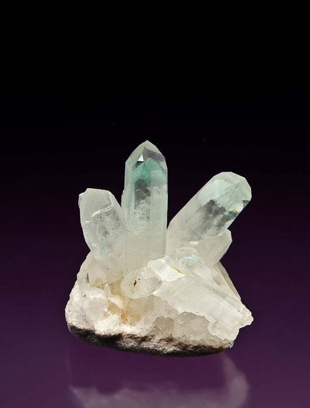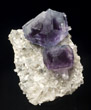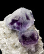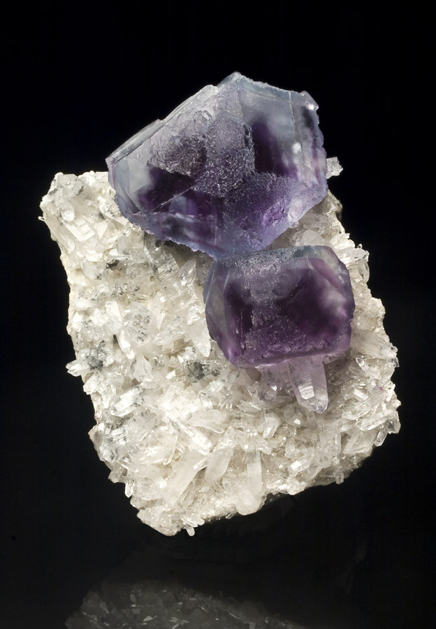 MMT-714 - Nestled in a matrix of quartz spears are two well-formed fluorite crystals containing superb purple phantoms surrounded by a blue-green outer zone. The largest crystal measures 3.6 cm and sits on the horizon of the piece to good effect.