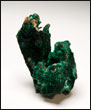 NY3-452 - Malachite coats a defined pair of cuprite crystals on a matrix of calcite probably included by cuprite (var. chalcotrichite) in this small cabinet specimen from renowned collector Marshall Sussman.