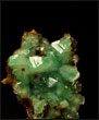 NY4-502 - Lustrous, orange-yellow crystals of wulfenite to 1.0 cm are aesthetically positioned on a matrix of mottramite that shows a pleasant chatoyancy. The specimen displays well from all sides, as it is well-crystallized on front and back. The "front" displays crystals of the finer color, however. Very nice!