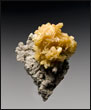 NY3-425 - Radiating acicular crystals of lustrous yellow mimetite cling to both sides of a light gray crystalized matrix in this large miniature specimen from the famous Tsumeb Mine. Dabs of green, most likely duftite, also make an appearance.