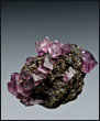 NY3-435 - Gemmy purple fluorite cubes cover a sphalerite matrix spangled with tiny chalcopyrite crystals in this attractive miniature specimen from the Elmwood Mine.