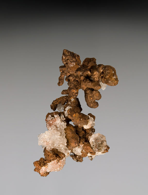 NY3-462 - Clusters of bright, doubly-terminated quartz crystals selectively coat defined copper crystals in this attractive miniature specimen from the Katanga area. According to sources familiar with the area, native copper specimens are rather rare.