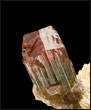 NY2-369 - Accenting albite blades accompany a lustrous, transparent tourmaline that is simply a step above most miniatures I've seen from this area in a while. The tourmaline does NOT have an opaque schorl core, but rather has an inner zone of olive green that transitions to grass green with a light pink cap. The faces of the termination are glassy, more so than usual. There are several nice side-car crystals as well.