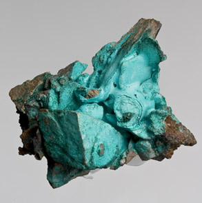 MMB-551 - A shimmery, micro-crystalline layer of the uncommon copper sulfate hydrate posnjakite coats the surface of a blocky matrix from the famous Drakewalls Mine in Cornwall. The attractive robin's egg blue mineral is associated with an un-labelled green mineral.