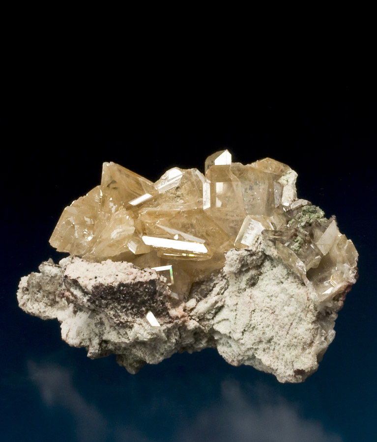 MMB-698 - A cluster of wulfenite crystals (to 2.0cm) with color reminiscent of cream soda formed on a ridge of matrix in this superb specimen from Tsumeb. The quality and intricacy of the transparent crystals is very difficult to convey in the photos. Wulfenites from this world-famous mine are quite rare.