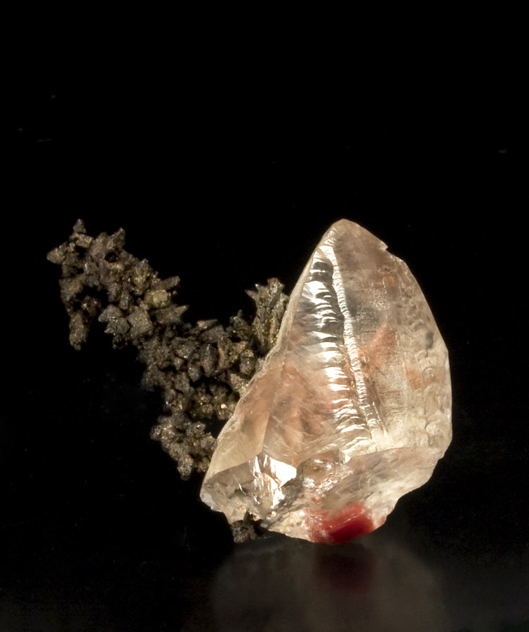 MMB-705 - A colorless, transparent calcite crystal encases arborescent copper in this attractive "toenail" (small miniature) specimen formerly belonging to the famous Dawn & Jim Minette Collection. Reminiscent of the copper/calcite combination pieces from Michigan...at a lower price.